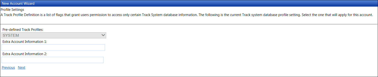 The SYSTEM profile, in the Pre-defined Track Profiles drop-down list, is selected by default and appears as a read-only field.